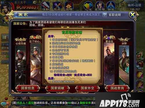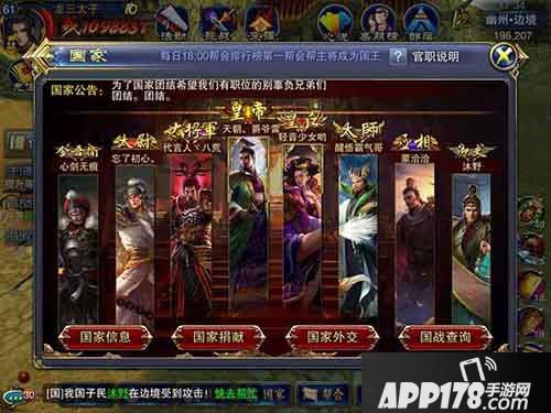 荣誉感是国家系统最出色之处,任何一个国家的繁荣富强都不可能仅靠一个最强帮派,因此皇帝的上任,往往要统筹兼顾,平衡本国其他帮派的管理者,合理的分封官职将有利于国家的发展与团结,从而最终获取国战的胜利,保护本国的子民。