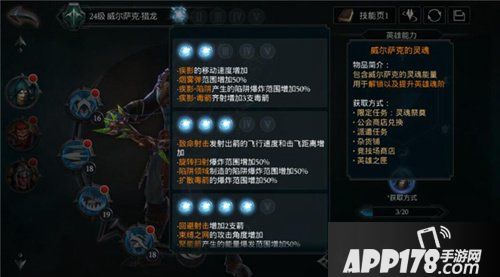 我们可以点击英雄头像,进入英雄列表后可以看到英雄的提升途径,第一排的就是装备提升,而第二排就是魂阶提升。魂阶提升之后英雄的各项技能效果都可以得到提升,例如威尔萨克猎龙的疾影移动速度增加,烟雾弹范围增加50%,陷阱的爆炸范围增加50%,毒箭齐射时增加3支毒箭等。这些效果可以让我们在竞技场和副本中更加灵活,伤害更高。