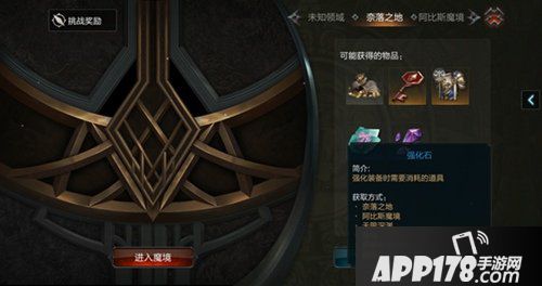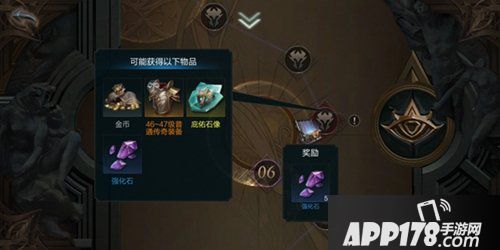 ⑤黑暗之境:黑暗之境在特定的层数会有额外奖励,有几率获得装备、强化石与合成材料。通关后还可以回到玩法界面,点击箱子领取强化石。