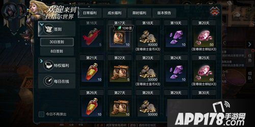 ⑨签到:活动面板中有需要福利,其中包括每个月都会有的签到活动。8日签到也会有强化石,同时还能获得永久时装一套。