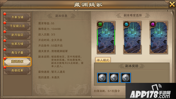 藏渊疑冢是产出银币的副本,55级开启,小伙伴们要努力升级呀!