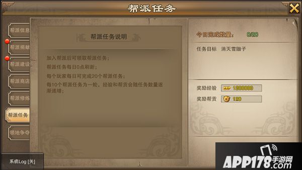 v 玩法说明:加入帮派后则每天可以在帮派接取帮派任务。