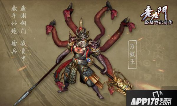 万奴王就是伏羲氏族留守的后裔,他们几乎原封不动的守护着伏羲氏族的传统。每一代万奴王死去,青铜门才开启,这就是伏羲氏族古老的死亡和交替仪式。作为游戏中世界BOSS,每次被击败都会在青铜门中获得力量,再次重生。每次重生后,万奴王的能力将会大幅度提升!任何玩家,都可以在活动开启时,参与挑战,只有一起合作,才有可能获得胜利。