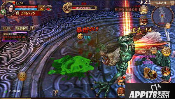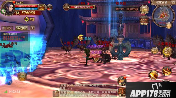 玩法说明:张家古楼为多人挑战副本,需组队进入,分为简单、普通、困难3种难度,需要在1小时之内通关,过时则挑战失败。