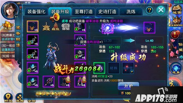 玩家等级需要达到30级才能对装备进行升级,武器能提升的级数上限是60级。每10级可以消耗材料升级一次,提升较多属性,举个例子:玩家40级时可以将30级装备升级为40级,50级时,可以将装备40级装备升级为50级。