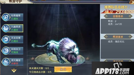 值得一提的是“帮派守护”活动,道友们可以根据每个BOSS关卡所推荐的战斗力,邀请本帮挚友组成三人小队一起刷BOSS,每天每人可以挑战不同BOSS五次,而每一次击败BOSS都可以获得铜钱、升星神石等奖励,可让战斗力得到飙升!