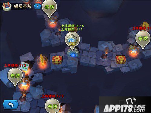 可布防之处分为驻守据点和地窖布防两种,除这两种外,其他位置无法修改布置。通常驻守据点只为了阻拦对方,可以放整体阵容中偏弱的镖师,消耗对手。而地窖布放则需要重兵防守,这里是勾玉资源的囤积点,一旦被攻破,你的损失可是很大的。