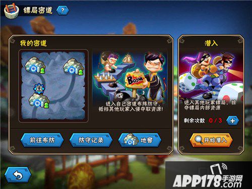 地窖布防:共3处,最多布置6名镖师,1辆镖车。主地窖占50%资源,其余各占25%资源。可任意分配主地窖位置便于灵活防守。