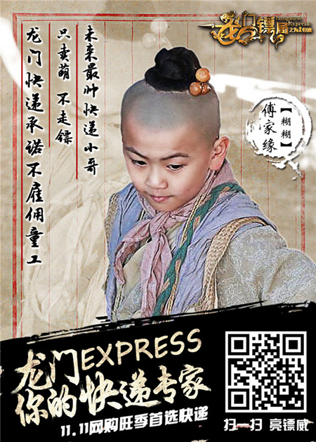 今日片方发布了一组恶搞海报,郭京飞、吴倩、张瑞涵等主演变身快递员,号称“11.11购物旺季首选快递”!据悉,龙门镖局的“终身包邮”服务可能并非噱头,从上月起就有龙门镖局的专车和包机在各地亮相,让围观群众惊叹不已。