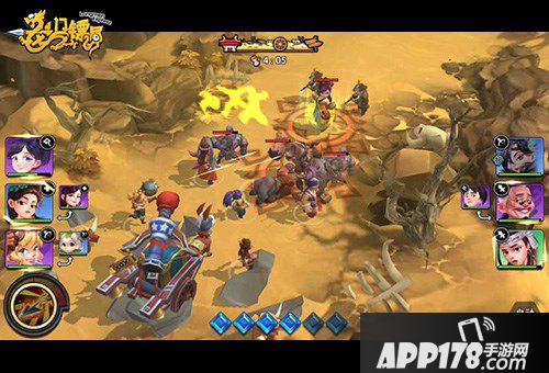 进入地图,首先点掉路上设置的障碍,这些会对我们造成大量的伤害,然后就是对阵了,在这里建议大家,当首发阵容技能放完以后可以召唤出助阵镖师进行火力打击,轮换需要5秒的冷却时间。