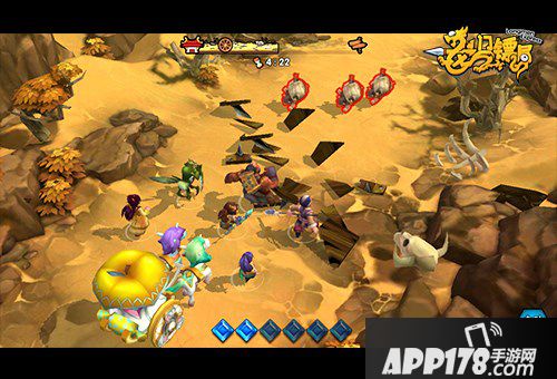 进阶版本陷阱:图中可见到的陷阱,除了滚木之外,都是上面普通陷阱的进阶版。先说说笑脸地雷,形象上增加了笑脸,体型更大伤害更足,需要点击两次才能破坏掉。火焰擂石同样威力十足更难破坏,需要点击三次才行,同时,需要尽早的破坏,否则它在地面留下的火焰依然会灼烧你的队伍。滚木则是目前来说比较恶心的陷阱了,需要点击8次才能破坏,不过每次点击之后滚木的速度都会下降,点的够快的话,甚至可以将它定在原地破坏。
