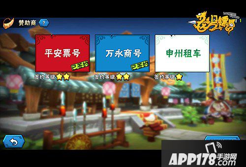 首先说下赞助商。目前共有平安票号(产出镖旗)、万永商号(产出铜钱)、申州租车(产出齿轮)三种赞助商可供选择。
