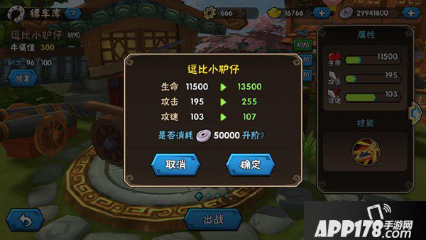 在点击进入【镖师】界面中,提升每位镖师的装备和技能时均需要消耗一定数量的铜币及材料。同时,在点击进入【镖车库】页面,改良镖车的属性值到满值后,进阶镖车仍需要消耗一定数量的铜币。