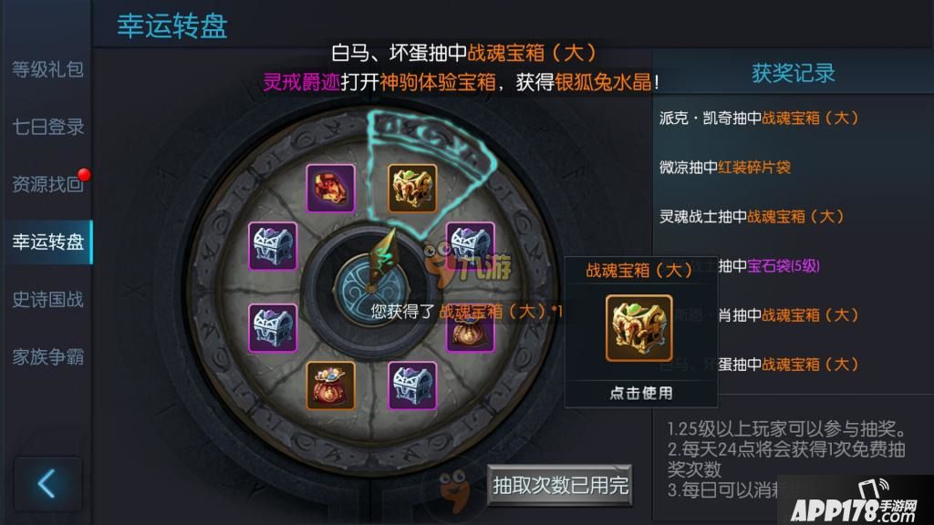 注意:资源找回并不能找回前一天日常任务奖励和活跃度宝箱奖励。