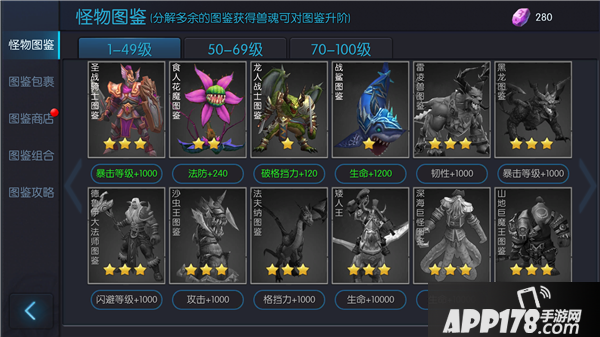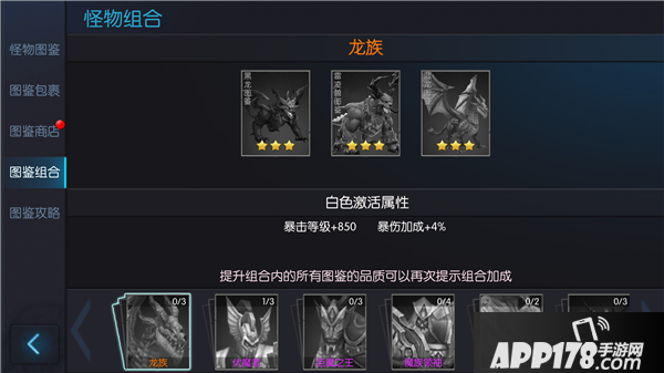 某些图鉴之间存在一定的联系,这些图鉴都被玩家激活后会触发图鉴组合,得到额外的属性加成,尽可能的多激活图鉴组合,是每个玩家的目标。