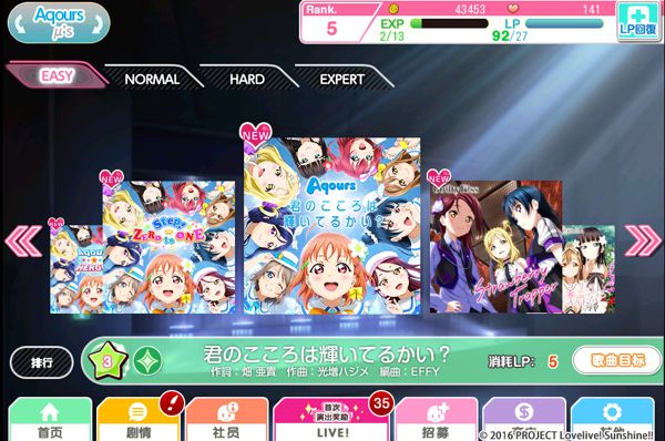 解锁Aqours的主线剧情与等级无关,这样无论是老玩家还是新玩家都一样可以接触最新的内容。所有的故事、游戏内台词、语音都是由Aquours成员亲自完成的。
