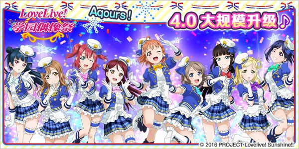 盛大游戏宣布《LoveLive!学园偶像祭》简体字版将在2017年2月21日迎来4.0大版本上线。本次更新标志着Aqours的正式登场,全新的学园偶像团体Aqours曾在2016年7月5日席卷日版,让无数日本粉丝欢欣雀跃,登顶日本国内游戏榜。