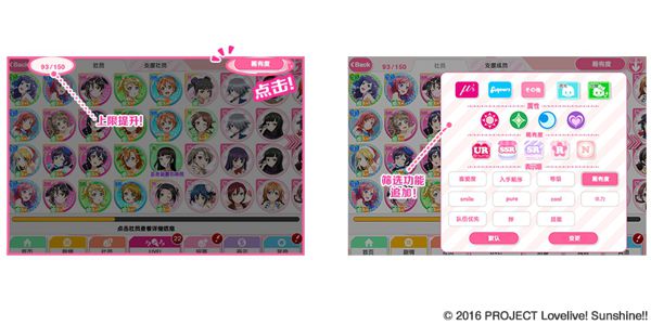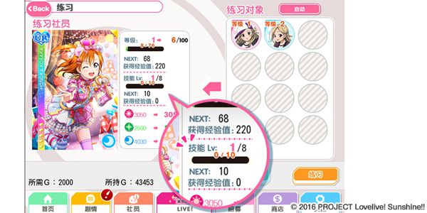 截止目前,玩家需要至少2位相同的社员来进行特训(觉醒)。现在玩家可以使用贴纸来完成这项任务。玩家也可增加学园偶像技能的卡槽数量。