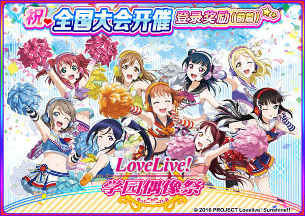 《Love Live!学园偶像祭》2017全国大会正式开战!!为了纪念第二次全国大会的顺利举行,游戏内将会进行7日登录奖励、限定礼包、Aqours 3 rd歌曲(HAPPY PARTY TRAIN)限定配信以及第一次Challenge Festival开启预告。为全国大会所有的参赛选手加油吧~