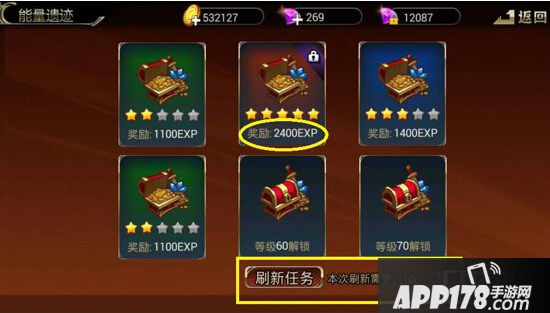 5、扫荡能量遗迹;可以使用“刷新任务”按钮,刷到4星、5星的副本果断扫荡了。下面附的例子是个五星的(小编的运气还是很好的)