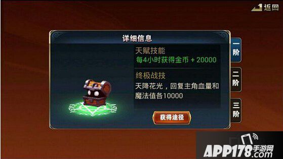 固定时间获得金币产出:这是一个会吐金币的魔法宝箱。
