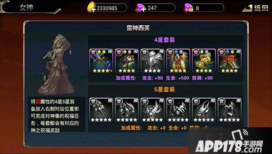 装备和圣器都可以装备到女神身上;女神穿上装备后将提升出战角色的人物属性。