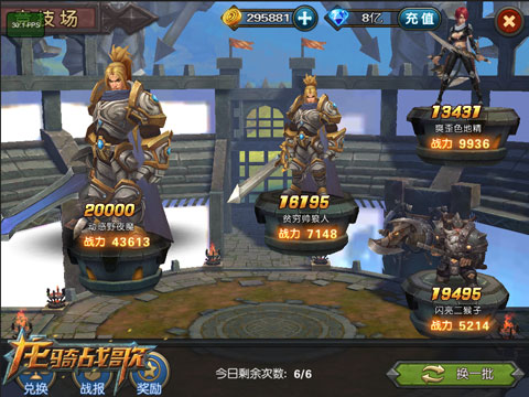 在《龙骑战歌》中,竞技场是证明玩家实力的最佳场所。去竞技场中战胜对方,获得最高荣誉吧!玩家每日挑竞技场的战次数默认为6次,每天凌晨5点自动补满挑战次数。当次数为0时,玩家可以通过消耗钻石来补满挑战次数。玩家挑战胜利不产生CD,失败的话需要休息10分钟再继续挑战,玩家可以使用钻石清除挑战CD。竞技场为双方AI自动进行战斗,不可手动操作。另外,玩家还可以通过自己再竞技场的排名获得奖励,分为全服排名奖励和历史最高排名奖励两种。