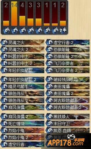 对手的技能非常厉害,手牌必须迅速消耗完毕,所以建议快攻,动物园应该比较不错,对手的膜拜者非常厉害,能让英雄加攻击力,英雄技能非常烦人要尽快消耗手牌,空手时术士每回合出两个生物,对手的生物质量不高,所以阿古斯架盾之后应该就好办了,小心对手有一张地狱烈焰,中了只能认命了。