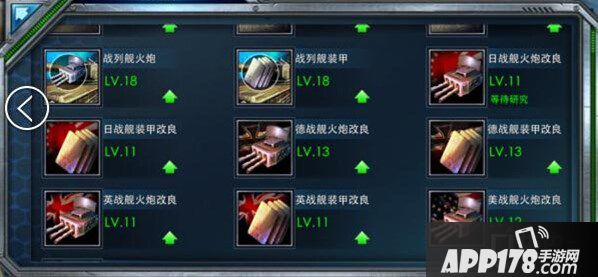 全体炮甲科技 以前的版本经常有人跳科技不升级驱逐舰和巡洋舰的炮甲,现在跳不了了,老老实实升10级吧,当然,从中期开始因为你全阵容都是4星以上的战列舰了,所以真正生效的只有战列舰炮甲这两个科技,其他的都没用了。
