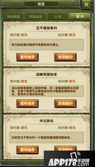 顾名思义,“互不侵犯”意味着在有效时间内,签订盟约的两个联盟互相不能攻占对方的领地。合理签订这个盟约,可以让联盟成员集中精力攻打首要敌人,而不用担心来自其他联盟的威胁。