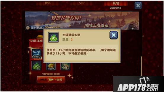 比如198的资源礼包,光是1980的蓝钻就值回198了,剩下的资源、金币、建筑加速、经验双倍的道具相当于都是送的~最关键的是,建筑加速道具在商店是买不到的