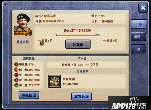 将领培养分为三种,分别是:军官升级、军官培养和军官升星。