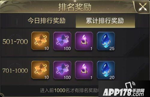 累计排名501-1000名的主公,则可以获得不同数量的橙色将魂、紫色将魂、紫色突破龙玉以及中级洗炼玉