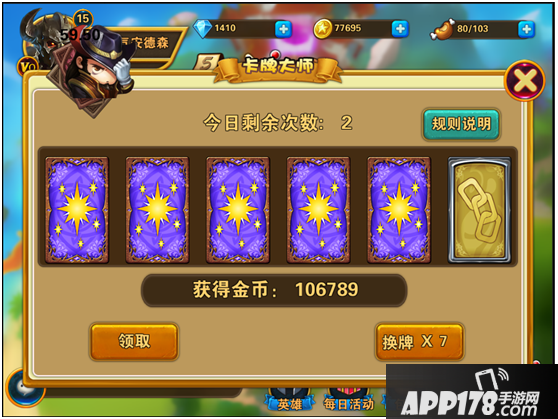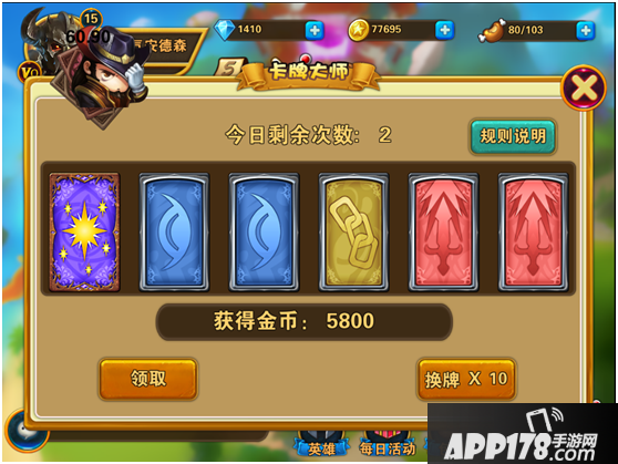 由此可见,通过抽取更多的命运牌可以获得更多的金币。在一次游戏中,大家对命运牌的数量比较满意时,点击领取按钮就可以领取到对应的金币了。