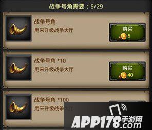 列王的纷争战争大厅从1级升到15级需要30战争号角
