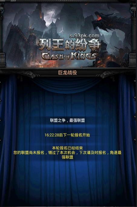 巨龙战役的出现,让许多联盟距离荣耀之巅又近了一步。在93pk《列王的纷争》巨龙战役中,不同王国的联盟代表不同的阵营。只要你的联盟创建时间超过2周,且战力位于所在王国的前50名,便可以通过盟主和R4来报名参与巨龙战役。活动开启后,每周一均可报名,报名持续时间为3天,报名时,盟主和R4可以选择比赛时间段,选择同一时间段的联盟将会被分配到一起进行两两对战。报名结束后,每个联盟最多可派出50名成员,由盟主和R4指派相应成员进入,只要你加入所在联盟的时间超过7天,便有机会被选中参与到高手如云的巨龙战役中哦!