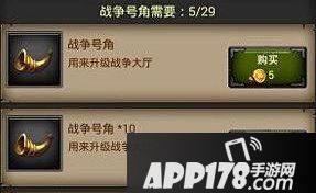 在游戏中战争号角这一个道具是提升战争大厅等级的必备物品之一,战争大厅的等级越高,那么再次升级需要的战争号角也就会越多。