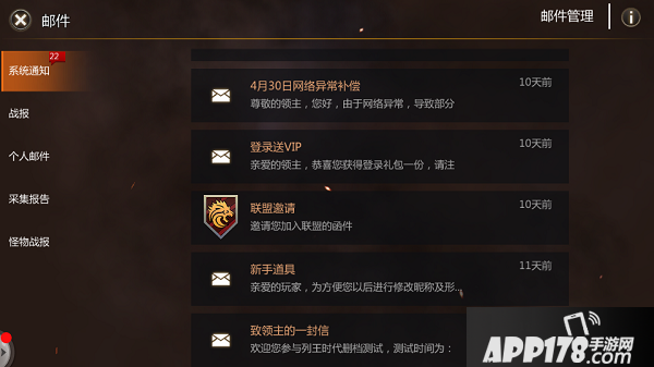 个人邮件则是包括联盟所发的全体邮件和玩家互相发送的个人邮件,领主们可以通过邮件单独聊天哦