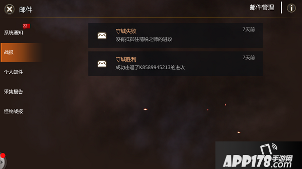 整个邮件系统分为五个大的版块,分别为系统通知、战报、个人邮件、采集报告和怪物战报