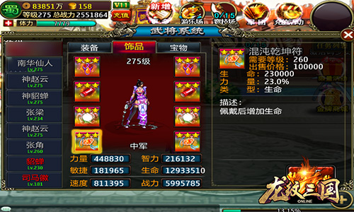 全新的副本当然会有更顶级的饰品掉落,在“瘴气峡谷”副本中征战冒险,主公将有机会得到一套全新260级“混沌饰品”,除了基础属性数值大幅增加之外,属性百分比提升更是高达23%,直接大幅提高主公战力!如此强悍的属性,你已经摩拳擦掌准备勇闯地狱之地了吗?