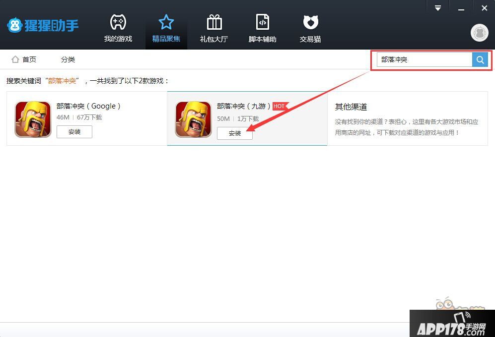第三步,安装完成后打开猩猩助手,进入精品聚焦页面,在搜索栏中搜索"陆小凤传奇手游",就会出现这款游戏的最新电脑版程序安装包。