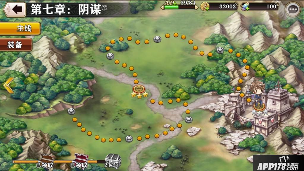 每一章根据通关星数获得量,可以在左下角领取对应的宝箱,一定要记得领取。