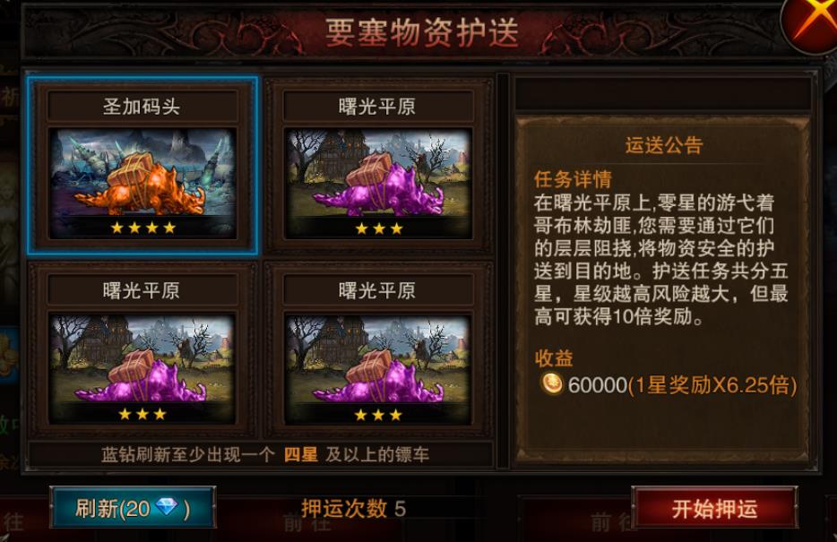 活动奖励:金币(镖车星级越高奖励的金币数越高)