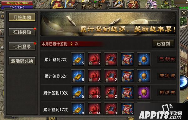 在线奖励:游戏一定时间后,要记得领取在线奖励
