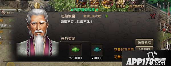 每天可完成12次每日除魔任务,花费少量金币刷10星+领3倍,经验功勋拿不停