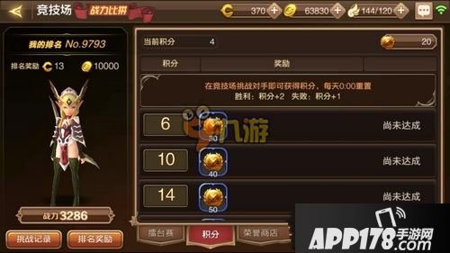 参与竞技场挑战还可以获得积分。挑战成功获得2积分,挑战失败获得1积分,积分最多可累积到30积分。