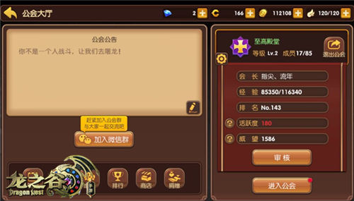 公会是《龙之谷手游》最重要的玩法之一。每个公会都有自己的专属营地,内含“矿脉争夺战”、“公会BOSS”、“公会擂台战”、“公会大冒险”等一系统特色玩法,以及海量的公会福利。可以说,在阿尔特里亚大陆,公会是玩家最坚实的后盾,没有加入公会将失去很多游戏乐趣。