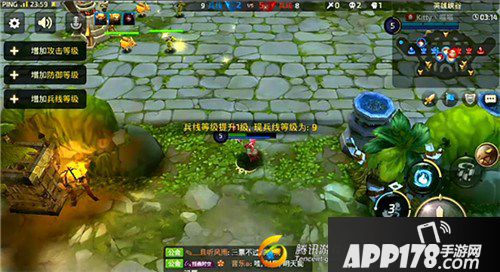 小伙伴们的等级每提升1级,即可在游戏屏幕的左上角进行一次加点选择。可供加点的属性一共分为三种,分别为提升自身攻击力,提升自身防御力,以及提升兵线小兵强度。前两种着重为自身生存以及收人头做考虑,而提升兵线实力则属于辅助类型,如果本方小兵的等级高于敌方阵营的小兵时,则会在短期内获得一定的兵线优势。