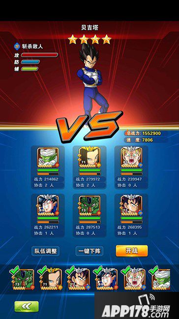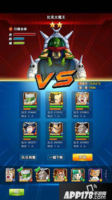 对于贝吉塔,这个Boss就比大魔王难对付多了,世界Boss贝吉塔拥有着无与伦比的攻击力,普攻都轻松的打出几十万的伤害,更别说绝招和必杀。所以面对贝吉塔不论前期后期,都要全部上阵6个攻击型战士或者战力最高的战士,不用上奶妈,并且保证生命值最低的是6个战士相对来说最差的一个,因为贝吉塔第一下攻击就是生命值最低那位,打完第一回合就直接被贝吉塔秒杀了。输出单体爆发最高的应该放后排,保证在最短的回合内打出最高的伤害。