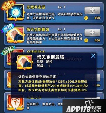 武道会是单挑王者的天堂,一个个看似普通的卡牌却在武道会的舞台上成为了黑马,瞬间满血的人造人20号,强大暴击单秒的孙悟空,套盾驱散额外伤害的比克等等都十分强大。更不用说老牌神卡的单挑能力,无敌高伤害的超贝,反伤回血的布偶,高暴击单秒能复活的沙鲁,都是武道会的霸主。而悟天克斯的降临,会很大程度威胁这些霸主的地位。首先来分析一下悟天克斯的特技,血量越少,攻击和减伤越高,而且血量低于50%变成超赛三,回复25%血量并增加攻防,也就是说如果无法对悟天克斯造成秒杀,就很容易被绝地反杀,残血翻盘。而悟天克斯本身的高成长,让他基础的血量和双防都很高,基本没有办法造成秒杀。而悟天克斯的绝招更是犀利,单体降怒或者减攻击,都能给对方的输出和开大时机进行有效限制,并且对tank造成额外60%伤害,堪称打肉利器,必杀更不用多说,稳定的控制,禁怒或者沉默,强行不给对面机会,并且必杀能回复自身怒气,很容易在武道会中开出第二个大招,造成持续压制。